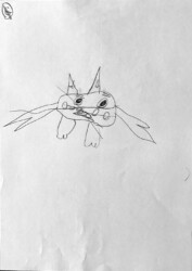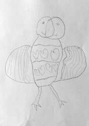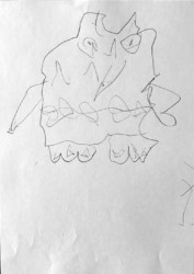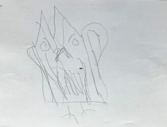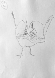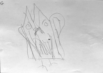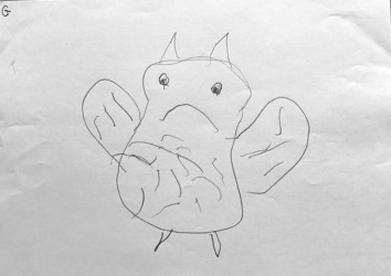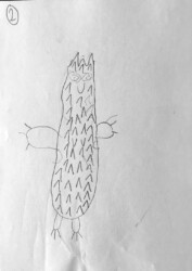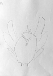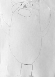 Lors de cet atelier j’ai demandé aux enfants de travailler avec « l’autre main », c’est à dire celle qui n’écrit pas. Je leur ai ensuite demandé de dessiner avec un crayon dans chaque main.