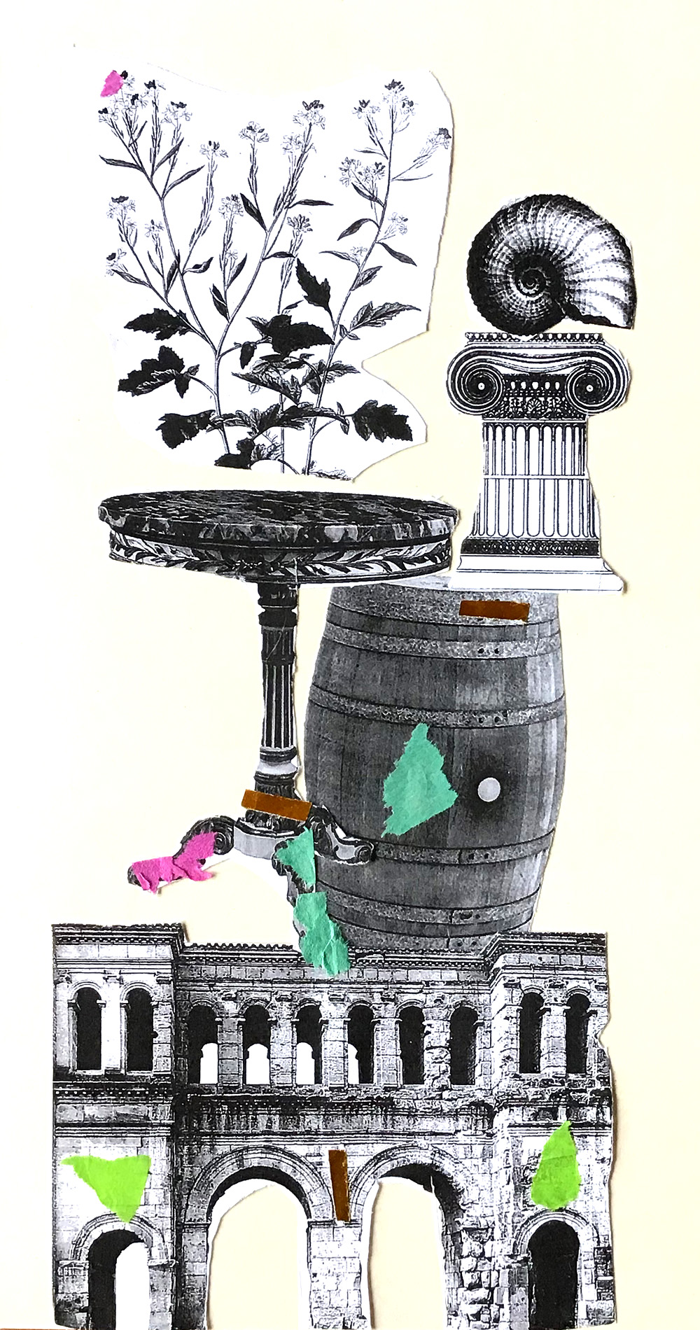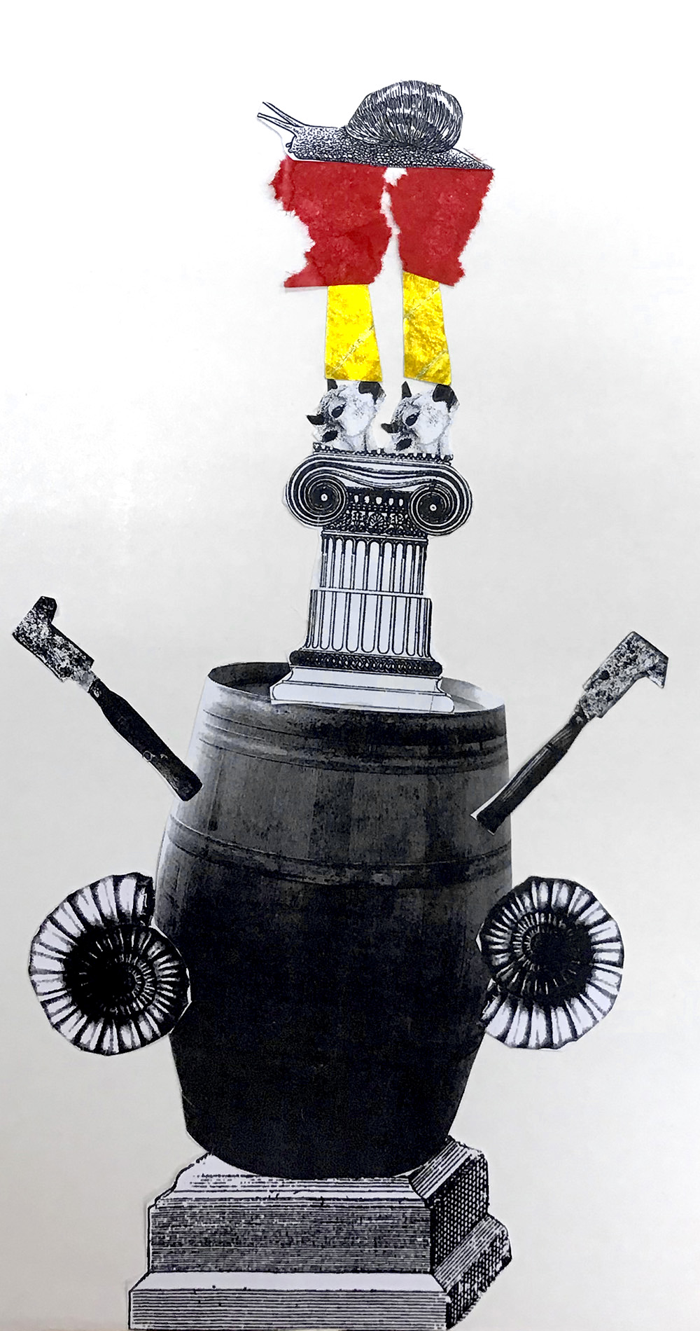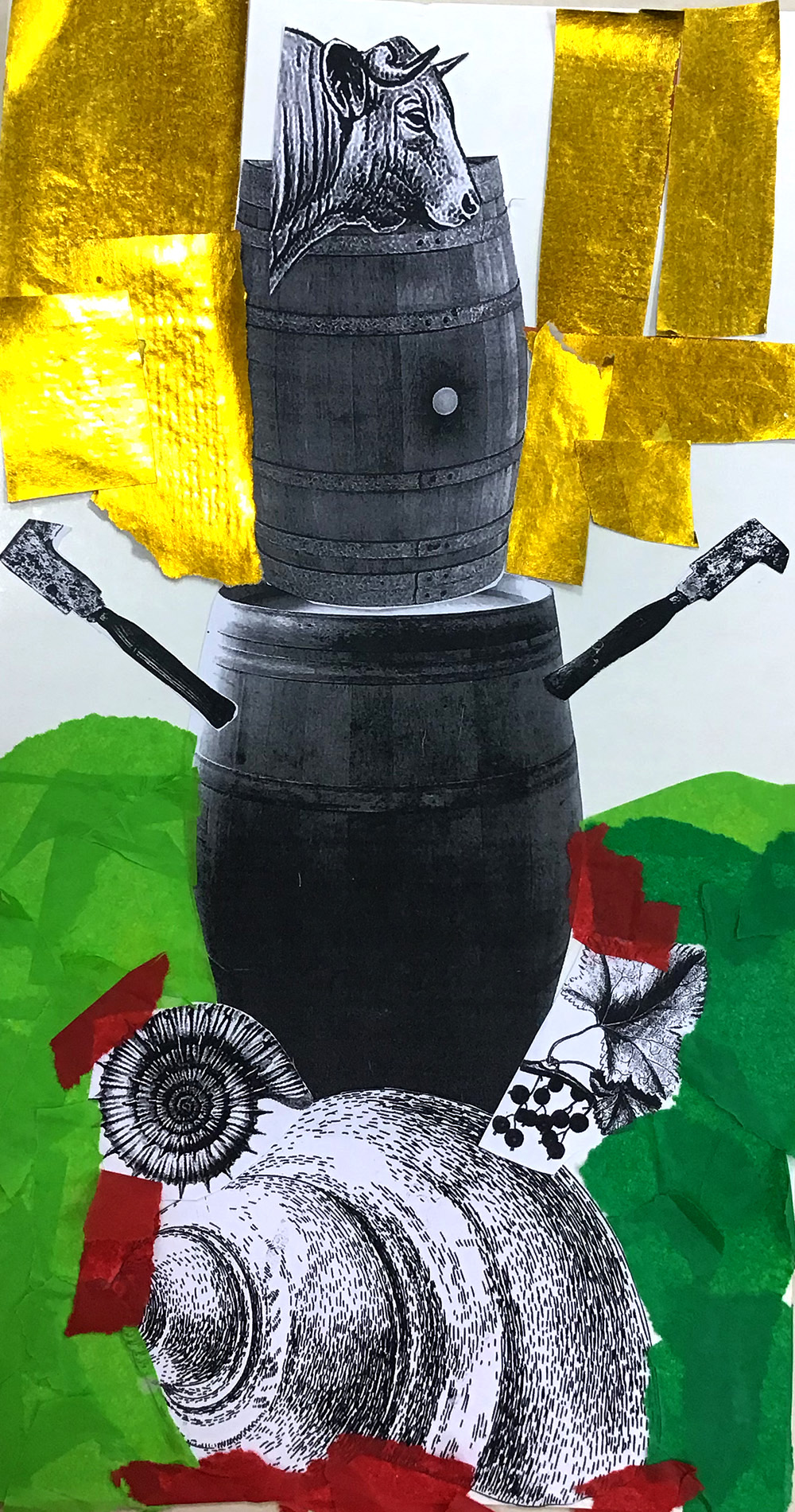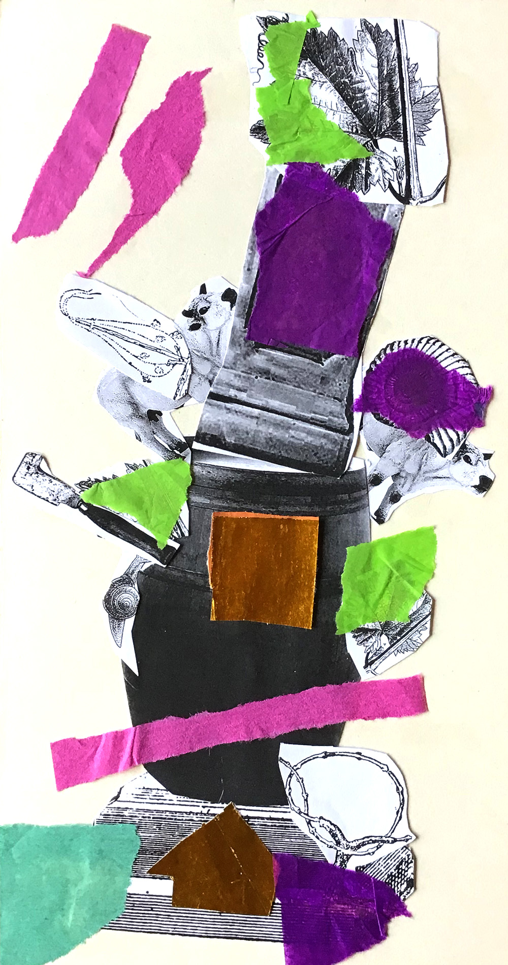 Lors de ce premier atelier, après avoir vu des nombreux exemples plastiques décrivant les formes variées que peut prendre un totem, j’ai proposé aux enfants de réaliser celui de la région. Il s’agit d’un jeu graphique, au cours duquel les enfants ont découpé et assemblé divers éléments en s’aidant des principes de verticalité, d’équilibre, d’empilement, de symétrie, etc.