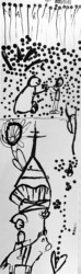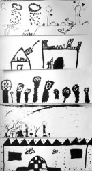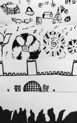 Lors de cet atelier, à l’aide d’outils inhabituels tel que des coton-tiges, des cures dents ou des calames, les enfants ont dessiné leur propre totem composé de ce qui les représente et ce qui leur tient à cœur. Pour les guider, je leur ai proposé de travailler à la façon d’un portrait chinois.