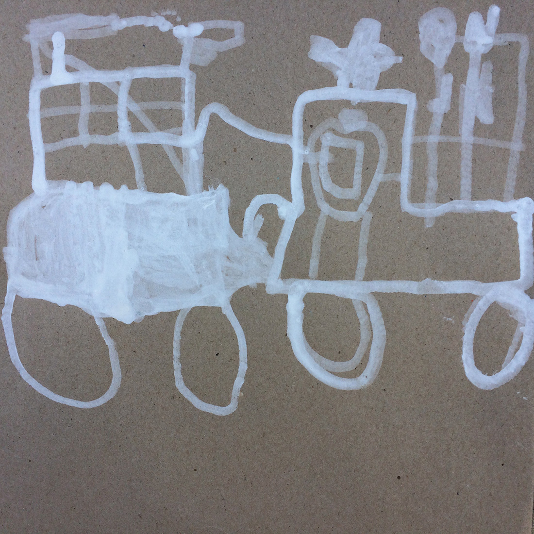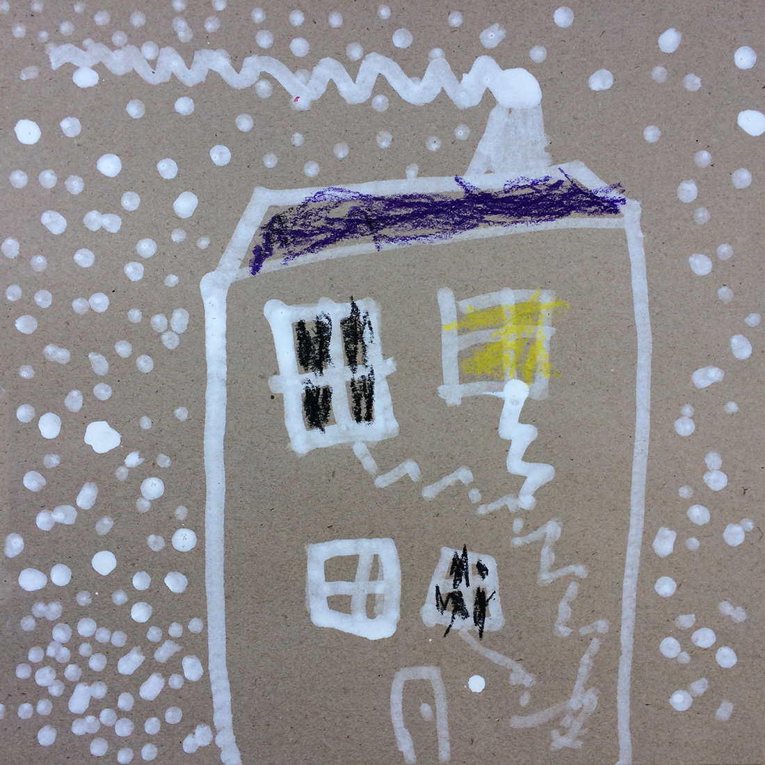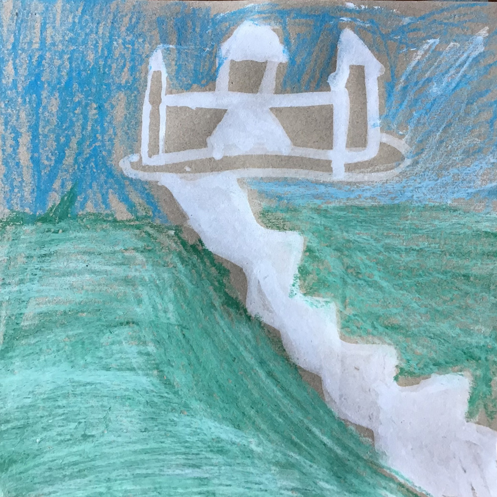 Recherches graphiques à l’aide d’outils inhabituels (calame, branchette, coton-tige) trempés dans l’encre, réhaussée avec des pastels gras.