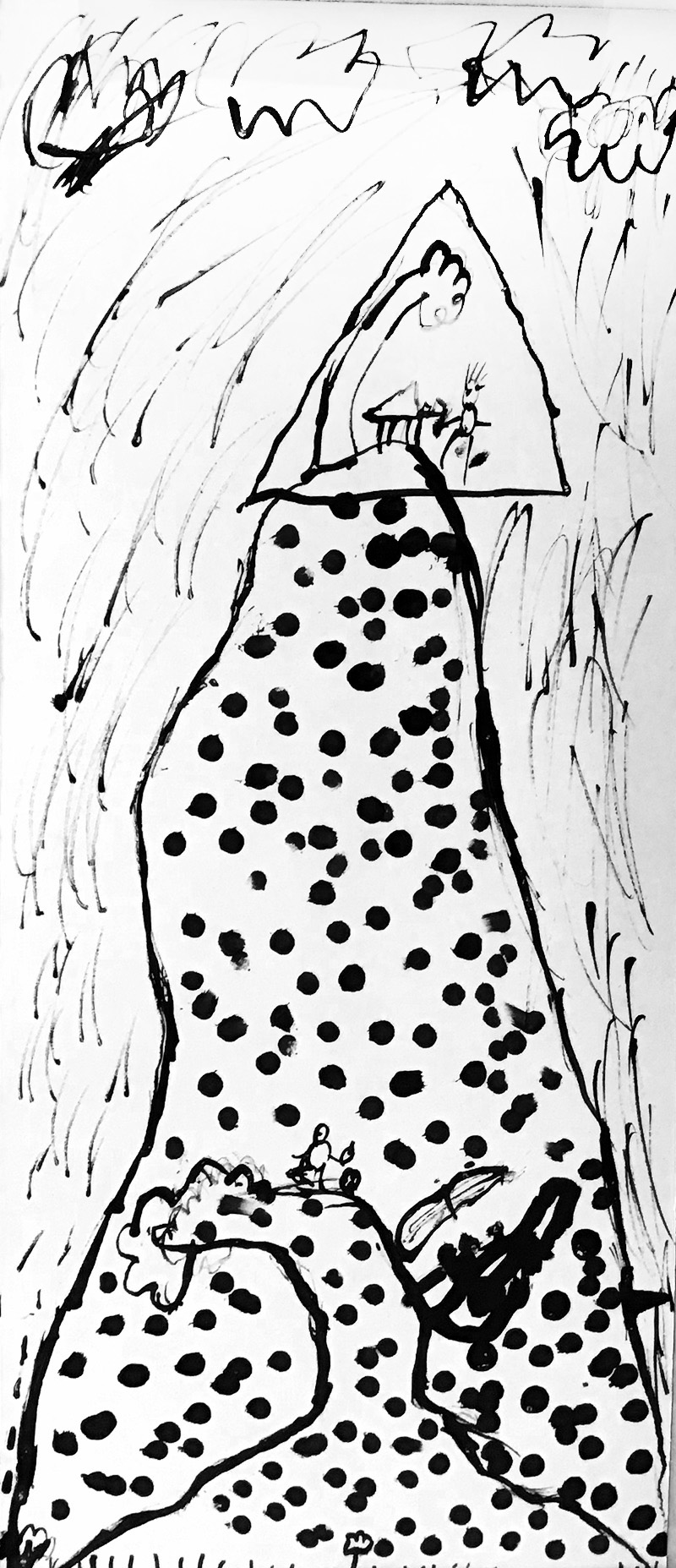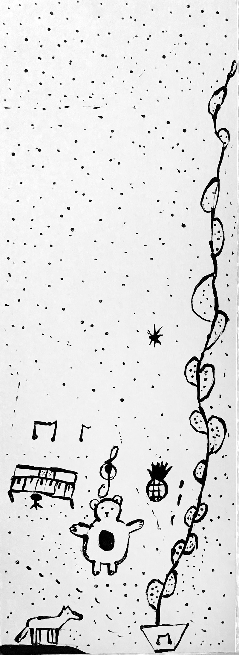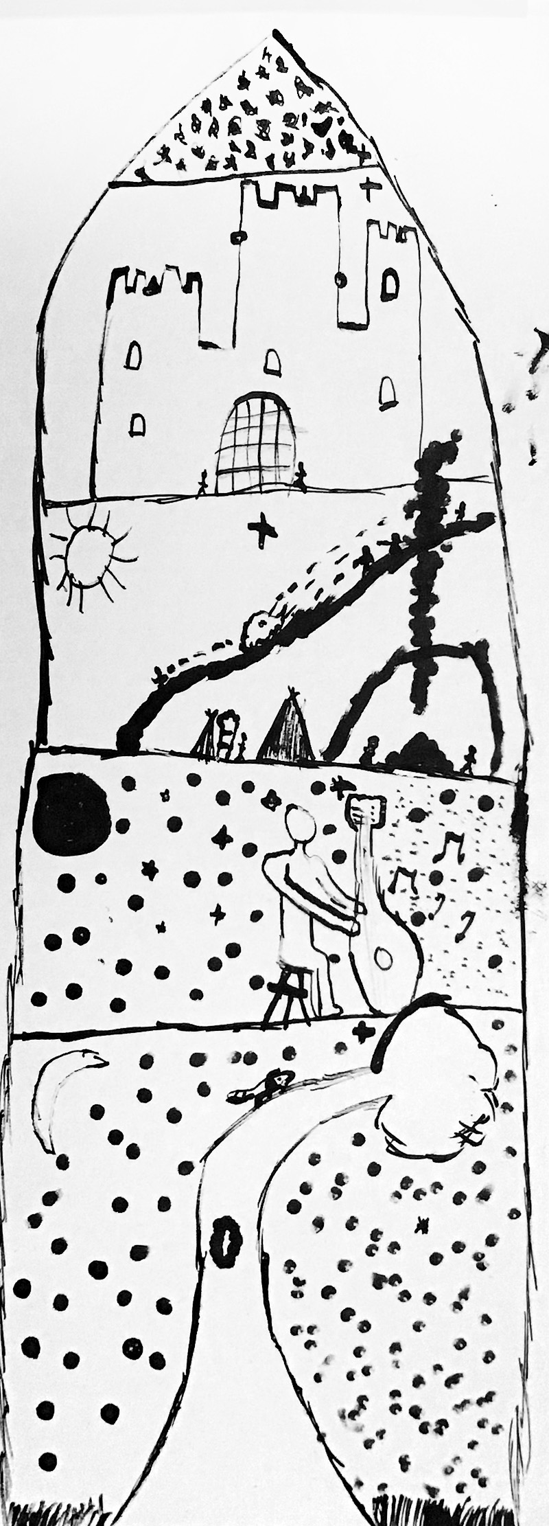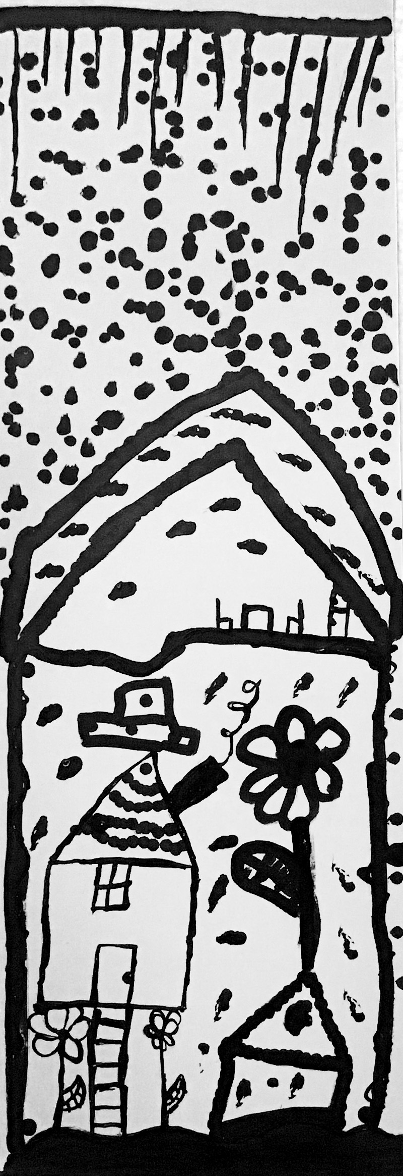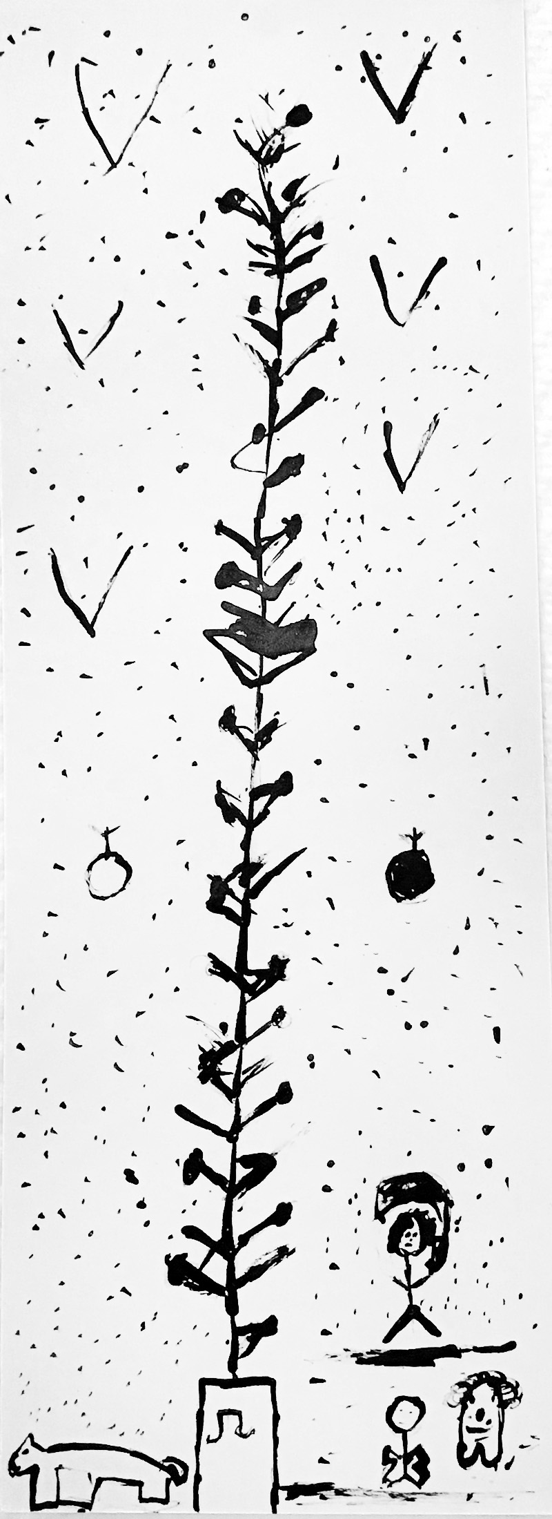 Lors de cet atelier, à l’aide d’outils inhabituels tel que des coton-tiges, des cures dents ou des calames, les enfants ont dessiné leur propre totem composé de ce qui les représente et ce qui leur tient à cœur. Pour les guider, je leur ai proposé de travailler à la façon d’un portrait chinois.