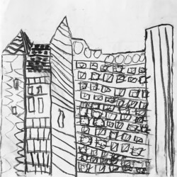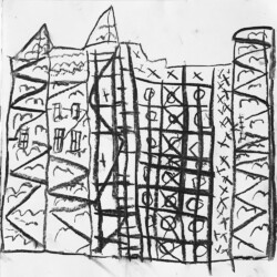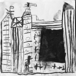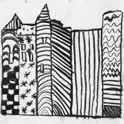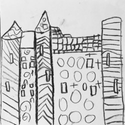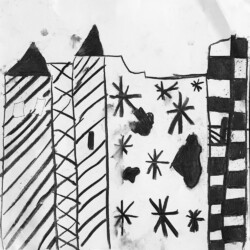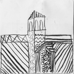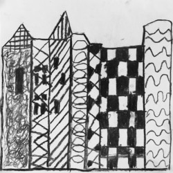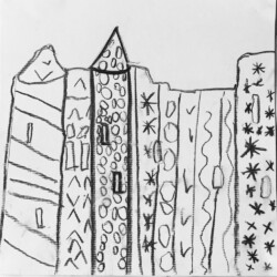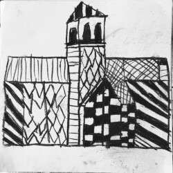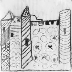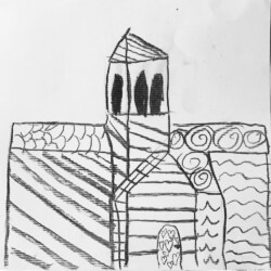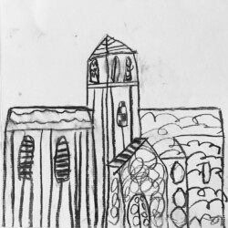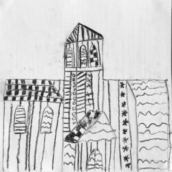 En s’inspirant des maisons peintes du Burkina Faso, des façades ornées du Yémen ainsi que du travail de Felice Varini et de Georges Rousse, les enfants ont travaillé graphiquement la façade du Château de Châteauneuf ou de l’église de Vandenesse-en-Auxois avec des fusains.