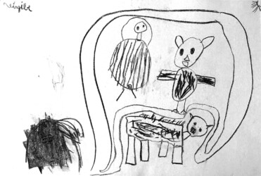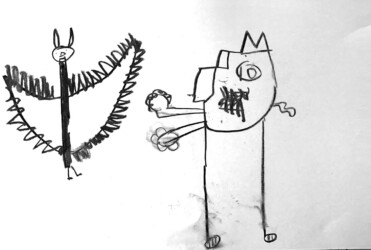 Lors de ce travail, les enfants ont continué de se questionner sur la façon de représenter les personnages de leur conte afin de transmettre leurs émotions.