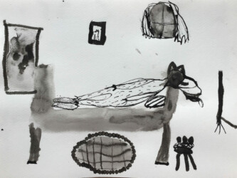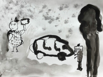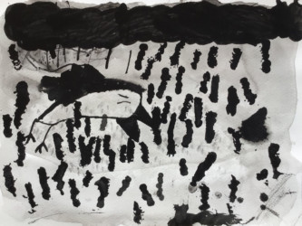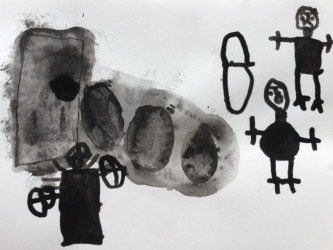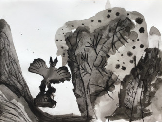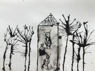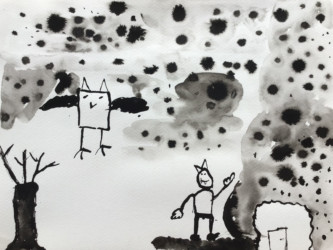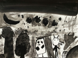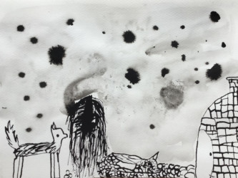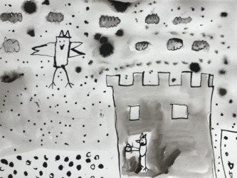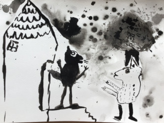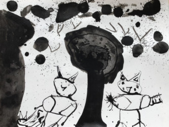 Tout les enfants se sont vus attribuer un passage de l’histoire à illustrer à l’encre de chine.