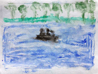 Dans la suite de nos questionnements sur la représentation de l’eau, les enfants ont peint des paysages qui leur ont permis d’expérimenter de nouvelles façons de rendre son impression, leurs sensations.