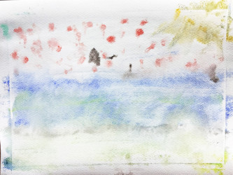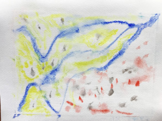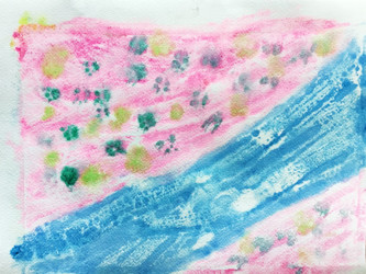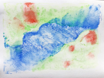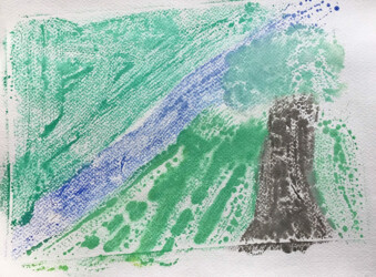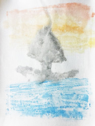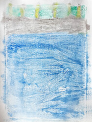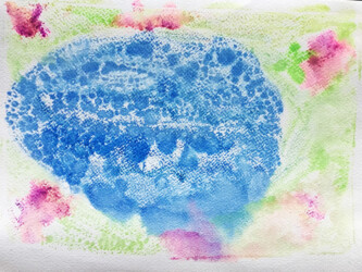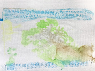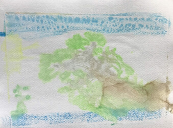 L’expérience consiste à peindre à l’aquarelle sur une plaque de rodoïd savonnée puis d’y appliquer une feuille humide.