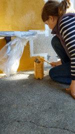 Nous avons réalisé cette fresque en famille et en trois soirées, avec de l’ocre issue des carrières locales.